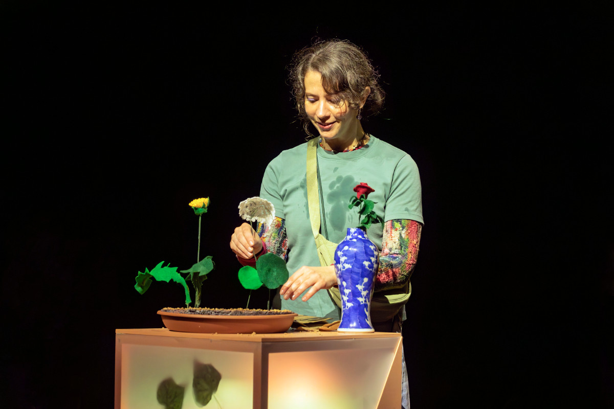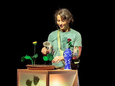 Meldung lesenAm 28. Februar hatte "Das grüne Königreich" Uraufführung im Jungen Schauspiel des Düsseldorfer Schauspielhauses, mit Eva Maria Schindele in der Haupt- und Solorolle, in der Regie von Leonie Rohlfing. Ein schöner Grund, mal wieder nach Düsseldorf zu fahren